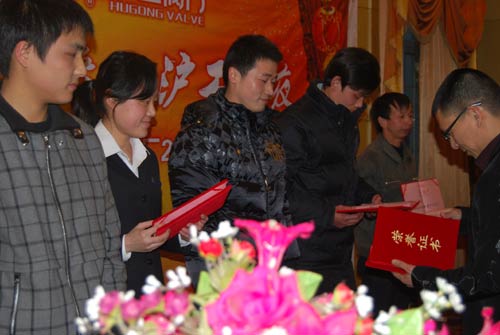 上圖為楊總為榮獲“先進集體”的油漆車間頒獎