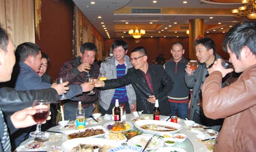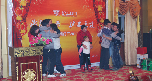 上圖為晚會上楊總向員工敬酒為大家祝福,并組織員工參加“找朋友”游戲,外貿(mào)部袁艷女士為大家?guī)硪皇住冻;丶铱纯础贰?/strong>