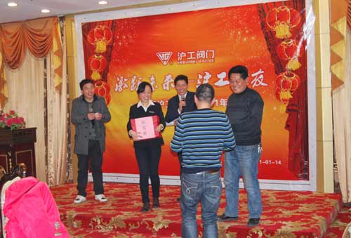 歌曲之后繼續(xù)抽獎環(huán)節(jié),上圖為柯主任在為員工抽獎并頒獎!